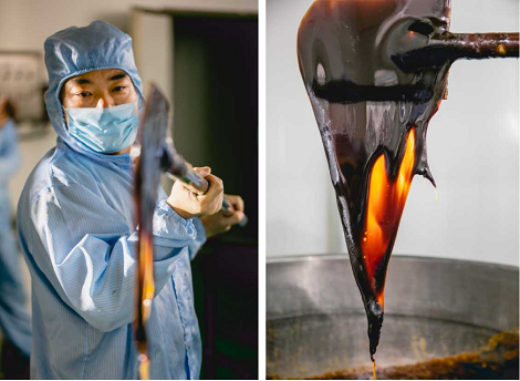 在雷会长陪同下,南京同仁堂团队实地考察了黑驴皮存放库、阿胶质检中心、冬至藏胶恒温恒湿库、阿胶非遗文化展示区等核心区域,对东阿古胶“道地原料、古法工艺、质控严苛”的理念及作为炮制鼻祖雷敩第55代传承人——雷会长的精湛古法熬胶技艺给予高度认可。
