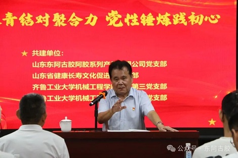 9月9日上午,一场以“银青结对聚合力,党性锤炼践初心”为主题的参观学习暨专题党课共建活动,在聊城市东阿县山东东阿古胶阿胶系列产品有限公司温情启幕。此次活动由山东东阿古胶系列产品有限公司党支部牵头,联合山东省健康长寿文化促进会党支部、齐鲁工业大学机械工程学部退休第三党支部与学生第三党支部共同开展,四方党员齐聚一堂,在交流中凝聚共识,在学习中锤炼党性。