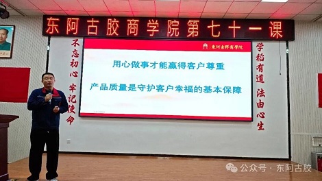 生产副总刘栋栋从“全员参与、心性坚守、持续改善”三个维度解读“做到完美,追求极致”的质量理念,强调食品质量安全既是“共同体”的目标,更是“做人做事”的准则,呼应了公司“以质量求生存,没有最好只有更好”的坚守。“食品质量安全不是一句口号,是咱们古胶人‘做人做事’的底线——就像熬制阿胶要守着‘九提九炼’的老规矩,咱们做产品也要守住‘不合格绝不出厂’的硬标准!”员工们频频点头,眼中满是认同。
