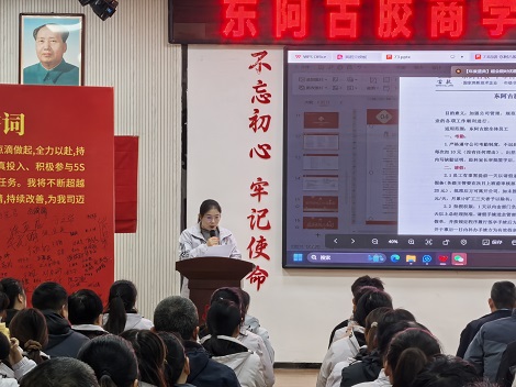 随后,赵萌萌部长继续解读“聚能成长,绽放荣光”员工激励方案,该方案以读书学习、实践奉献、创新改善为核心导向,员工可通过读书打卡评优、参与义务劳动、提出有效改善创新提案等途径获取小红花奖状,累计相应数量可兑换“最美古胶人”蓝、红色徽章及理发券、实用生活用品等奖励,且荣誉可跨月累计,旨在激发员工进取热情,营造积极向上的工作氛围。
