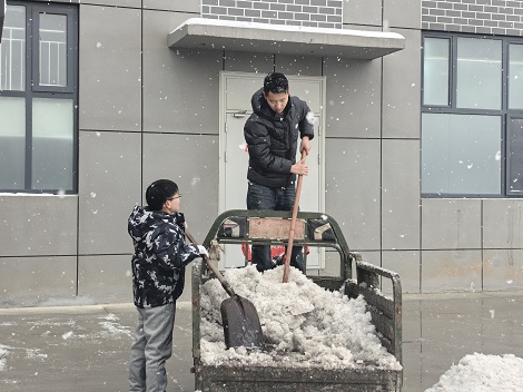 上班铃声刚过,公司全体员工便不约而同地来到厂区广场。没有提前安排,没有专人调度,大家的第一件事便是自发加入扫雪队伍。有的员工从库房借来铁锹,有的拿起墙角的扫把,还有员工开出了厂区的三轮车,一场热火朝天的扫雪行动就此展开。