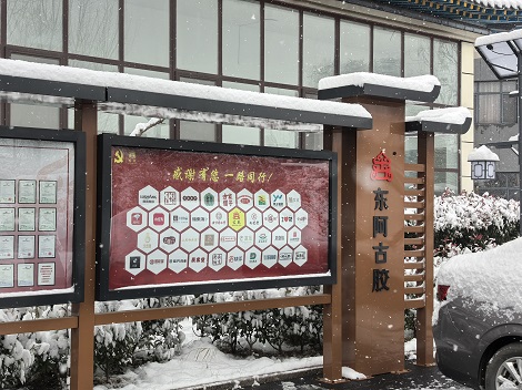 冬日的第一场雪如约而至,山东东阿古胶阿胶系列产品有限公司瞬间换上了银装。古风古韵的厂房黛瓦覆雪,飞檐下挂着细细的冰棱,与墙上的传统纹饰相映成趣;厂区里的绿植褪去了往日的翠绿,枝桠上积满了蓬松的白雪,宛如一个个精致的雪雕,憨态可掬。雪花还在纷纷扬扬地飘落,似柳絮、如鹅毛,轻柔地覆盖着每一寸土地,让这座浸润着千年阿胶文化的厂区,更添了几分静谧与雅致,美得如诗如画。