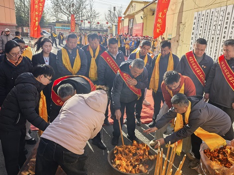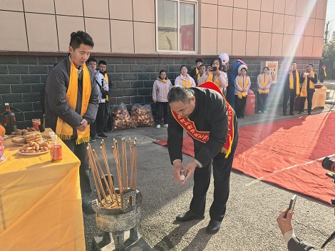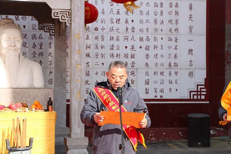 仪式的核心篇章,于东厂雷敩像前的祭祖环节正式展开。以雷总为首的各位传承人先行净手,以净手敬心彰显至诚敬意;随后依位次上香献酒,雷总、海总、杨总相继完成三初献礼;全体员工肃立鞠躬,感念先祖传艺之恩。杨立帅宣读《古胶堂训》,字字铿锵诠释“修合无人见,存心有天知”的准则;雷庆涛宣读《雷氏家训》,以“博爱众生,常施善德”彰显企业担当。望燎礼成,整场仪式庄重肃穆,完成了一次跨越时空的文化对话。